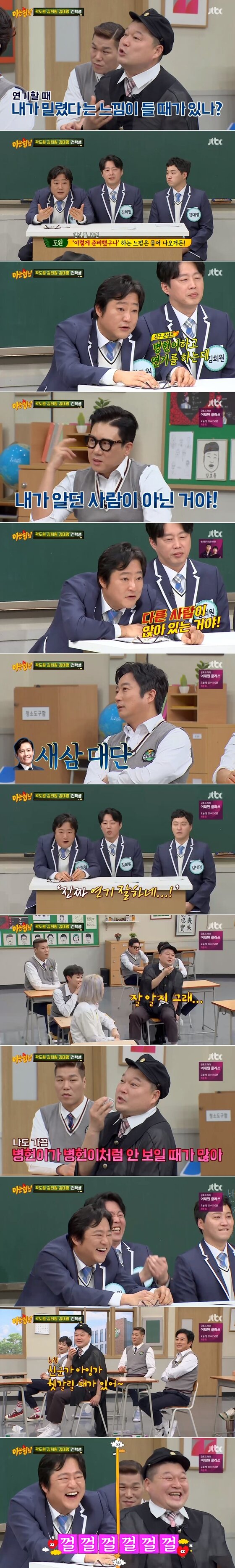 이에 곽도원은 "밀린다기보다 '이렇게 준비했구나'라는 느낌은 묻어 나올 때가 있다"라며 "(이)병헌이하고 연기를 하는데 내가 알던 사람이 아닌거다. 다른 사람이 앉아있는 거다. 그때 '내가 졌다. 준비 좀 더 할 걸' 그런 생각이 들더라. 그런 생각을 해 본 적이 없는데 '정말 연기 잘 한다'라고 생각했다"라고 말했다.