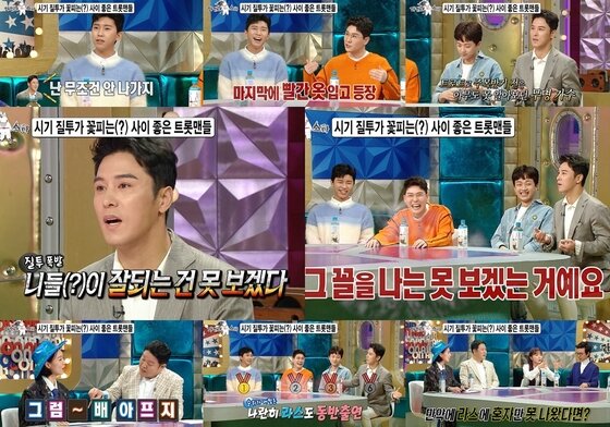 MBC '라디오스타'(기획 안수영 / 연출 최행호) 측은 1일 시기 질투가 꽃피는 사이 좋은 트롯맨들의 모습이 담긴 선공개 영상을 네이버 TV를 통해 공개했다.
