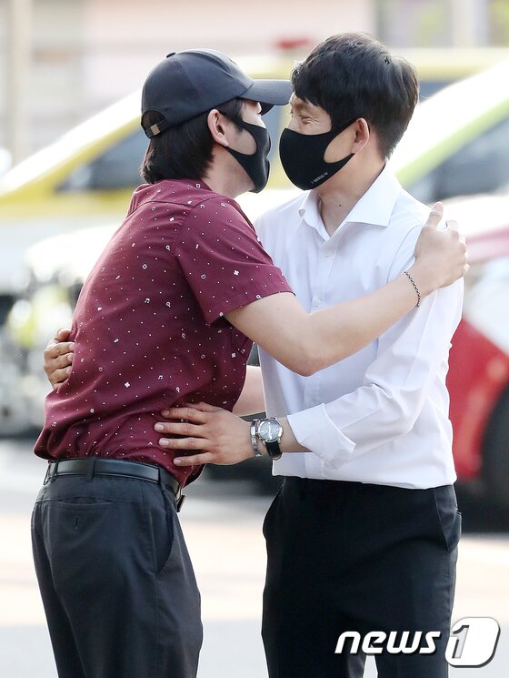 | 재난본부 관계자와 마지막으로 나누는 뜨거운 포옹 © News1 김진환 기자 |