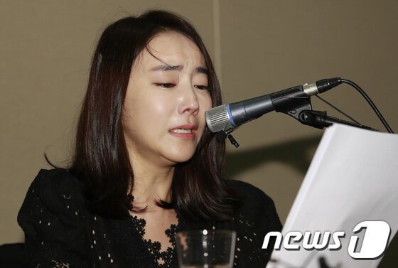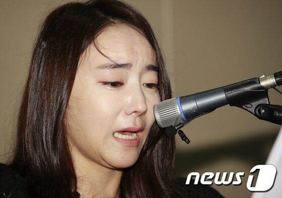 | 배우 박수인이 30일 오후 서울 영등포구 63컨벤션센터에서 열린 '골프장 갑질 의혹' 관련 기자회견에 참석해 입장을 밝히고 있다. 2020.7.30/뉴스1 © News1 권현진 기자 |