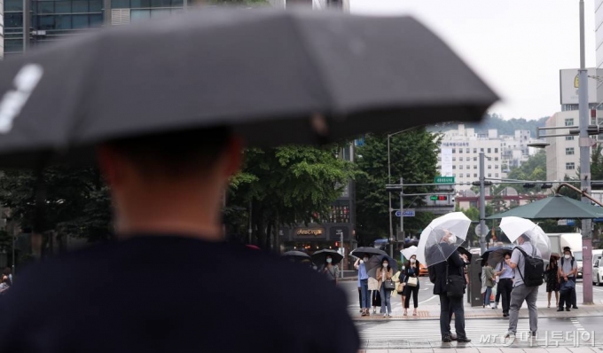| 전국에 본격적인 장마가 시작된 24일 오전 서울 광화문네거리에서 시민들이 우산을 쓴 채 발걸음을 옮기고 있다. / 사진=김휘선 기자 hwijpg@ |