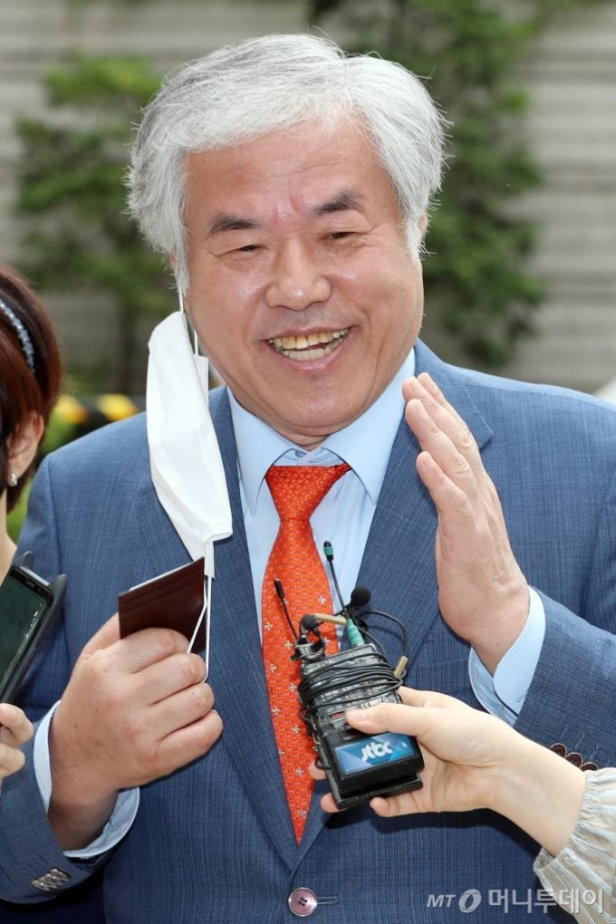 | 공직선거법 위반 등으로 재판에 넘겨진 전광훈 사랑제일교회 담임목사가 29일 서초구 서울중앙지방법원에서 열린 1차 공판에 출석하며 취재진 질문에 답하고 있다. / 사진=이기범 기자 leekb@ |