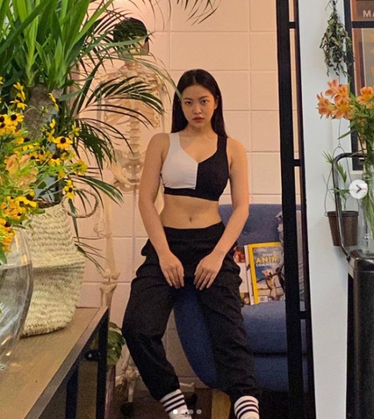 공개된 사진에는 블랙 앤 화이트로 배색된 브라톱 차림을 한 예리의 모습이 담겼다. 여기에 예리는 편안한 운동복 바지를 입고 허리라인을 드러냈다.