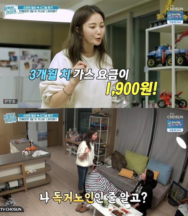 안혜경은 또 "나 도시가스에서 전화 왔다. 독거노인인 줄 알고 전화 왔다. 세 달 치 요금이 1900원이 나왔다. 점검하듯 전화가 왔다"고 말했다.