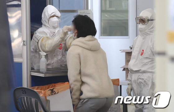 | 서울 한 보건소 선별진료소에서 시민들이 신종 코로나바이러스 감염증(코로나19) 검사를 받고 있다. 2021.2.26/뉴스1 © News1 임세영 기자 |