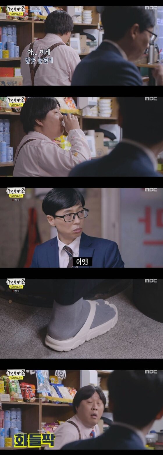 두 사람은 마치 '무한도전'에서 그랬듯 서로 티격태격 하는 모습을 보여 웃음을 줬다. 정 과장이 답답한 태도를 보여주면 유 본부장이 깐족거리며 응징하는 식이었다. 유 본부장은 급기야 참지 못하고 과거 무한상사 때처럼 정 과장을 때리거나 소리를 질러 웃음을 자아냈다.