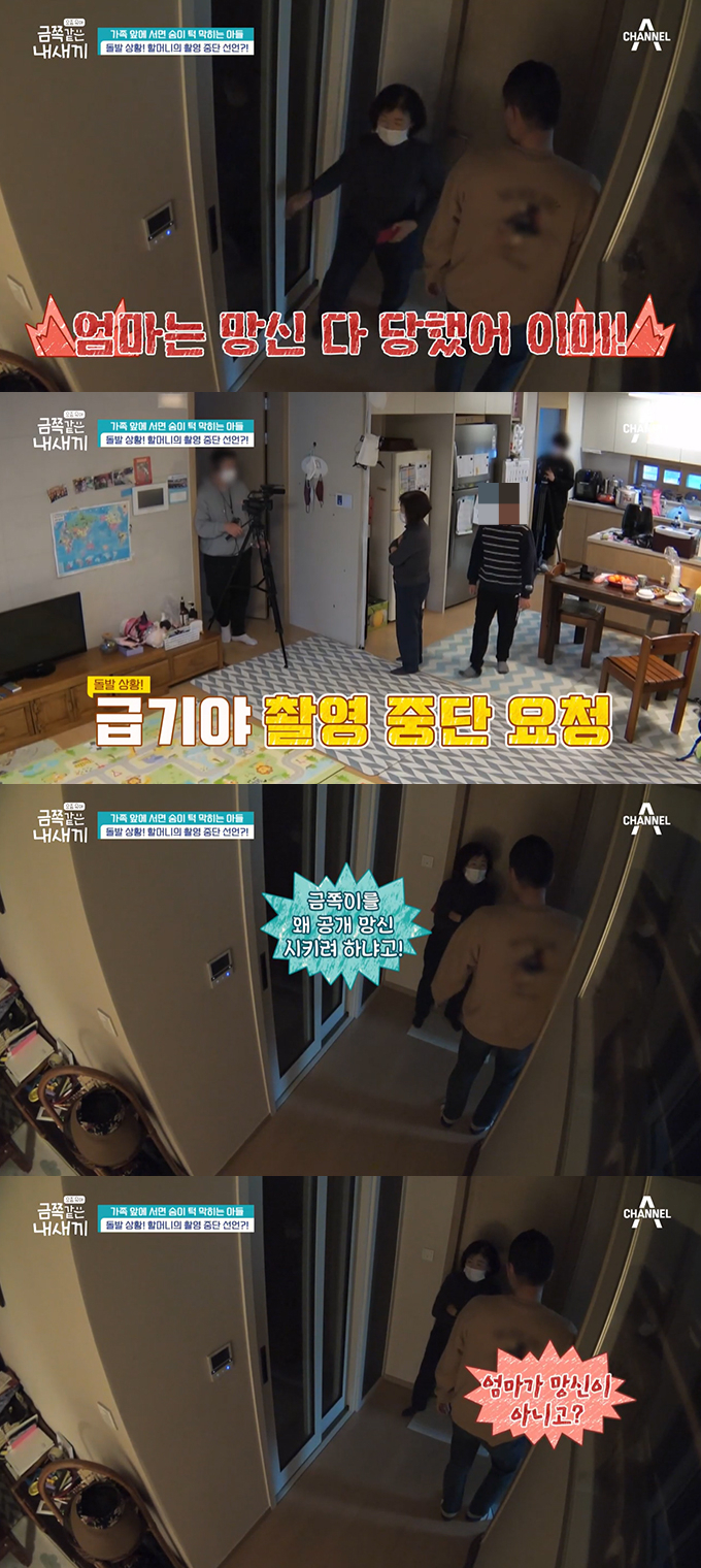 금쪽이 할머니는 "왜 (금쪽이를) 공개망신 시키려 하냐"고 아들을 나무랐고 금쪽이 아빠는 "망신이라고 생각하냐. 엄마 망신이 아니고?"라고 반박했다. 이에 금쪽이 할머니는 "나는 이미 망신 다 당했다"며 촬영 스태프를 향해 "촬영 그만하자"고 촬영 중단을 요청했다.