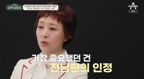 서정희는 이혼 후 극단적인 생각까지 했다고 밝혔다. 그는 "인정받을 대상이 없어졌다는 게 힘들었다"며 "극단적인 생각도 들었고 삶의 의욕도 사라지더라"고 했다.