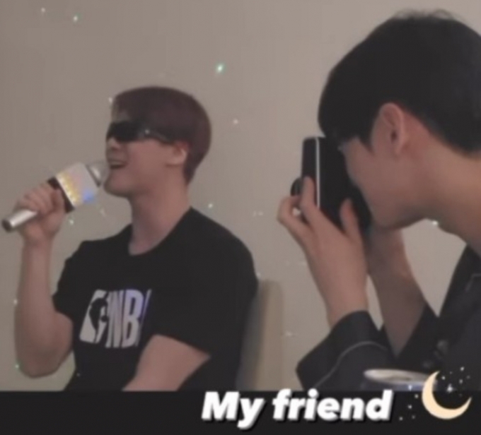 | 노래하는 생전의 고(故) 문빈(왼쪽)과 그를 찍는 차은우. /사진=차은우 인스타그램 |