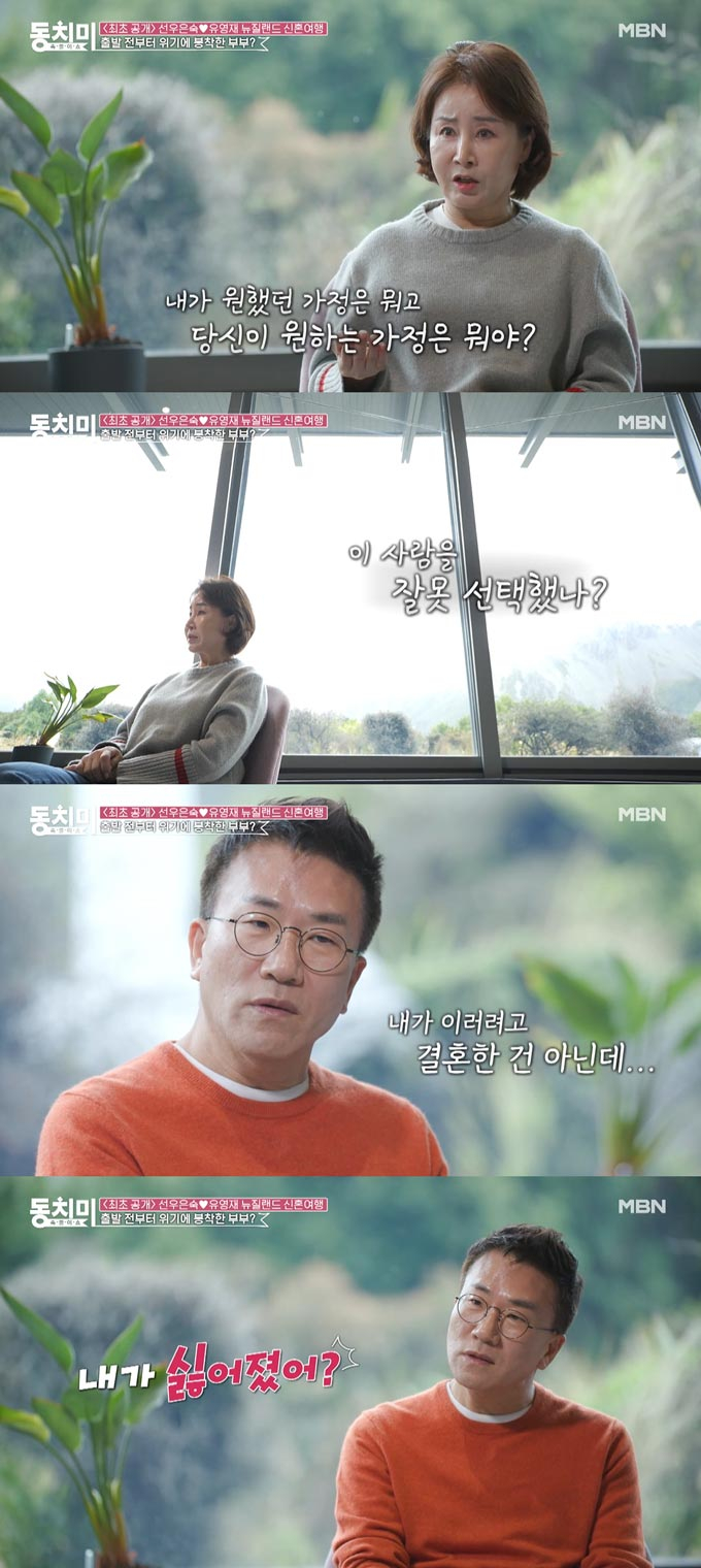 선우은숙은 제작진과 대화에서 "내가 원했던 가정은 뭐고, 당신이 원하는 가정은 뭐냐"며 "이 사람을 잘못 선택했나"라며 후회하는 모습을 보였고, 유영재는 "내가 이러려고 결혼한 건 아닌데"라며 "내가 싫어졌나"라고 말했다.